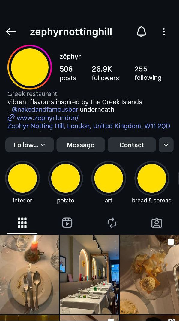 for Nina Marylebone for Piazza Italiana London for Zephyr Notting Hill for Soraya Abu Dhabi for Chicama Chelsea for Pachamama Shoreditch